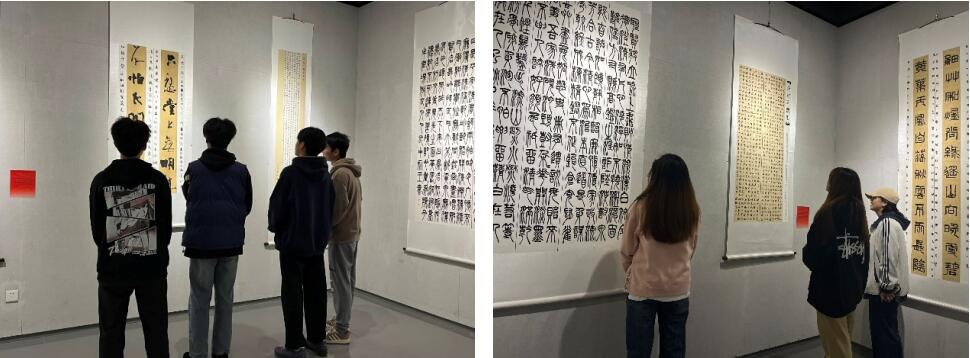 展览现场,一幅幅主题鲜明、笔力遒劲的书法作品,一方方构思精巧、意蕴深远的篆刻作品,以艺术形式诠释着廉洁文化的精神内核。师生们驻足观赏,在笔墨与刀石的艺术表达中,感悟 “廉” 的历史传承与时代内涵。观展过程中,大家或轻声交流对作品的理解,或拿出手机记录下触动心灵的艺术瞬间,在传统艺术的审美熏陶中,潜移默化地接受廉洁文化的洗礼。学院纪委书记吴晓燕表示:“将廉洁教育与艺术欣赏相结合的形式很有感染力,让我们在感受书法篆刻艺术之美的同时对廉洁的内涵有了更生动的认知。” 其中一位观展学生坦言:“此次展览不仅是学校廉洁文化建设的一次创新实践,更是以文化人、以艺润心的生动课堂,为营造崇廉尚洁的校园文化氛围、培育师生清正品格发挥了积极作用。”
