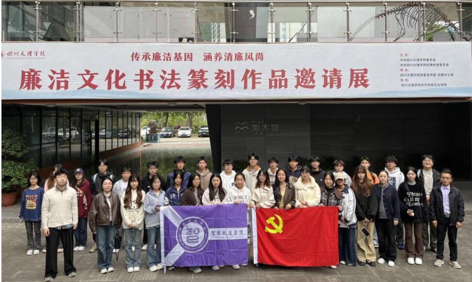 最后观展师生们在美术馆前合影留念。此次活动是智能制造学院推进廉洁教育走深走实的具体举措之一,不仅让师生在传统文化艺术中接受了廉洁熏陶,更引导大家将廉洁理念内化于心、外化于行,为营造风清气正的校园氛围注入了精神动力。